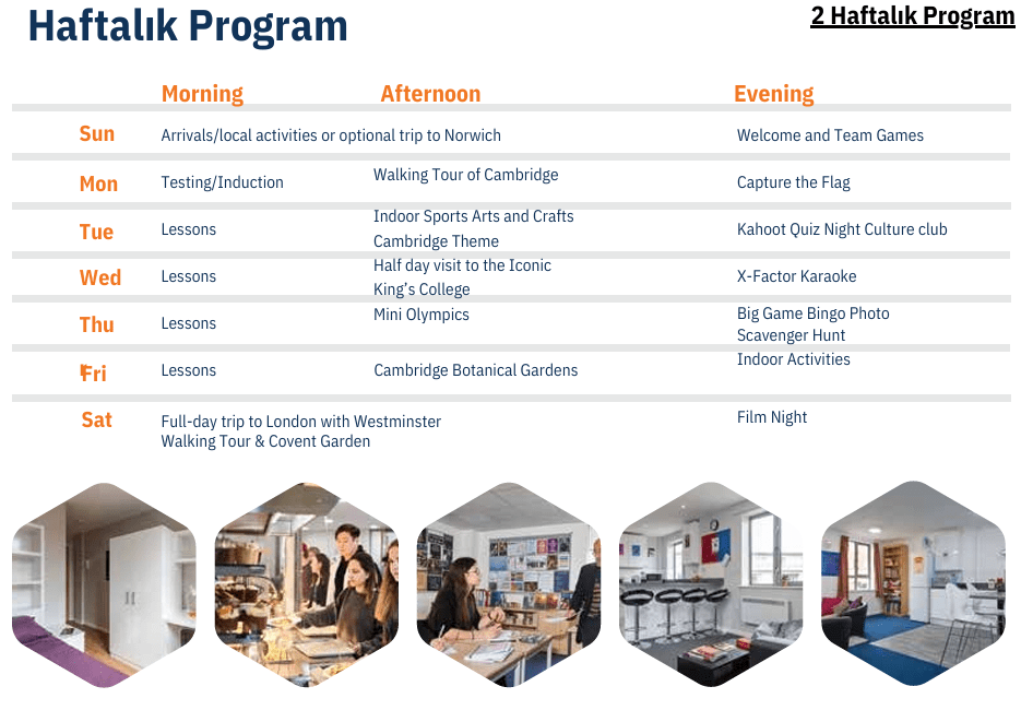 Ayrıca düzenlenen tam ve yarım günlük geziler, öğrencilerin ders dışı zamanlarını eğlenceli ve öğretici bir şekilde değerlendirmesine imkân tanır. Katılımcılar, Cambridge Üniversitesi kampüsleri, King’s College Chapel, River Cam ve diğer tarihi yerleri keşfederek İngiltere kültürünü yakından tanıma fırsatı bulur.