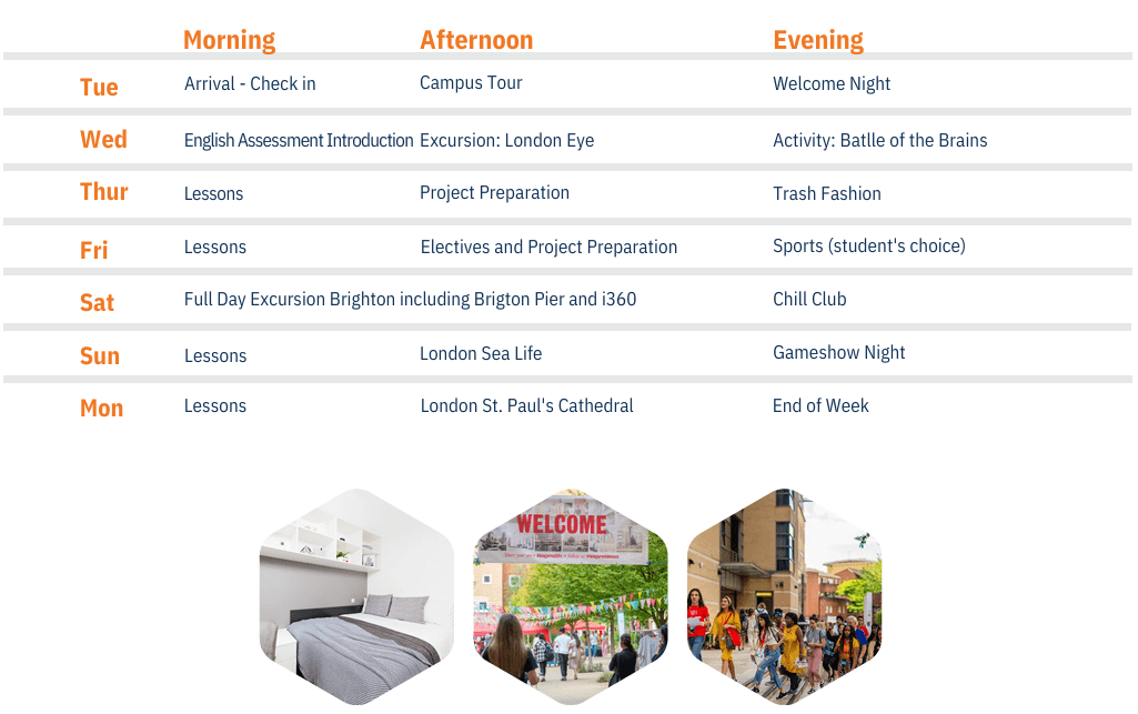 Program kapsamında tam ve yarım günlük geziler düzenlenir; bu geziler, öğrencilerin Londra’nın tarihi ve kültürel zenginliklerini keşfetmesini sağlar. Konaklama dâhil programlarda akşam etkinlikleri de yer alır; pizza partileri, film geceleri, yetenek gösterileri ve spor aktiviteleri, öğrencilerin sosyalleşmesini ve eğlenceli bir deneyim yaşamasını destekler. Program sonunda tüm katılımcılara tamamlama sertifikası verilir ve akademik başarı belgelenmiş olur. Intensive English – London hızlı dil öğrenimini sosyal deneyimlerle birleştiren kapsamlı bir programdır.