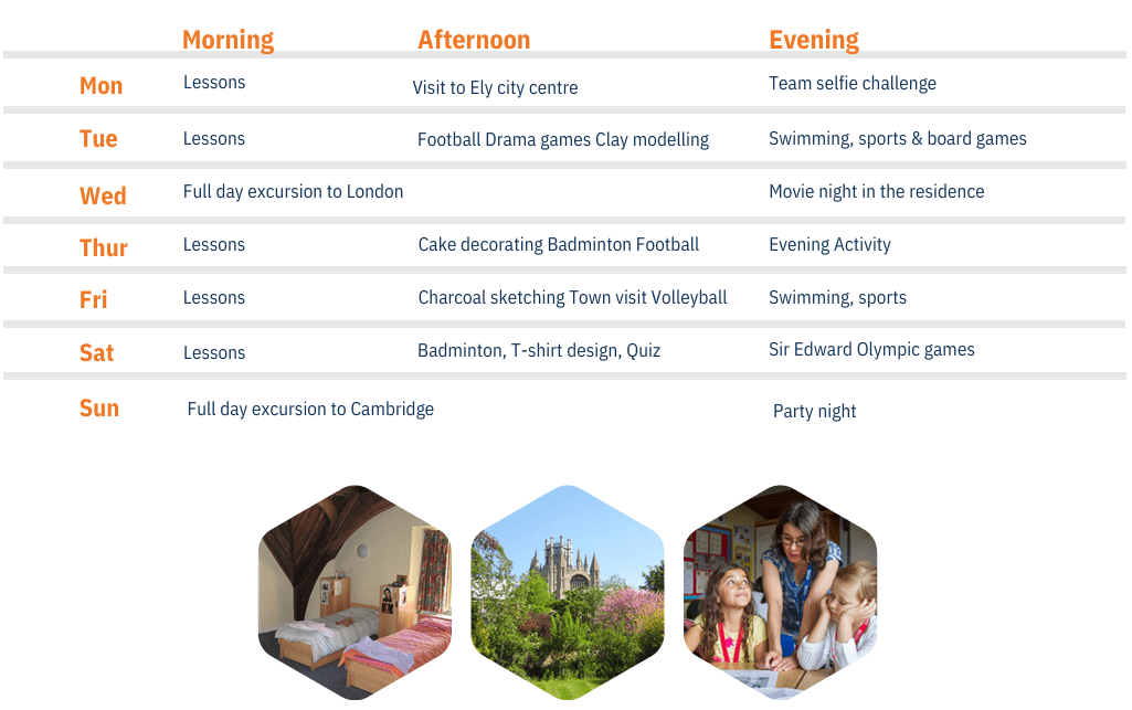 Sir Edward Yaz Okulu, öğrencilerine İngilizce’yi öğrenirken kültürel ve sosyal deneyim kazanma fırsatı sunan prestijli bir programdır. Program, Studio Cambridge tarafından yürütülmekte olup, dersler Kings Ely College kampüsünde gerçekleştirilecektir. Haftada 15 saat İngilizce dersi içeren program, interaktif ve uygulamalı etkinliklerle desteklenerek öğrencilerin dil becerilerini geliştirmeyi hedefler. Katılımcılar, dünyanın dört bir yanından gelen akranlarıyla etkileşim kurarak uluslararası bir iletişim ağı oluşturabilir. Program kapsamında düzenlenen tam günlük geziler, öğrencilerin Birleşik Krallık’ın tarihi ve kültürel zenginliklerini keşfetmesine olanak tanır.