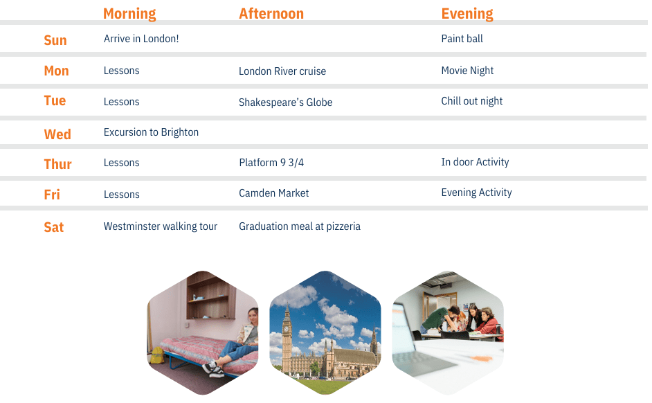 Program kapsamında tam ve yarım günlük geziler düzenlenir; bu geziler, öğrencilerin Londra’nın tarihi ve kültürel zenginliklerini keşfetmesini sağlar. Konaklama dâhil programlarda akşam etkinlikleri de yer alır; film geceleri, pizza partileri, yetenek gösterileri ve spor aktiviteleri, öğrencilerin sosyalleşmesini ve eğlenceli bir deneyim yaşamasını destekler. Program sonunda tüm katılımcılara tamamlama sertifikası verilir ve akademik başarı belgelenmiş olur. St. Giles – UCL London, dil gelişimini sosyal deneyimlerle birleştiren kapsamlı bir programdır.