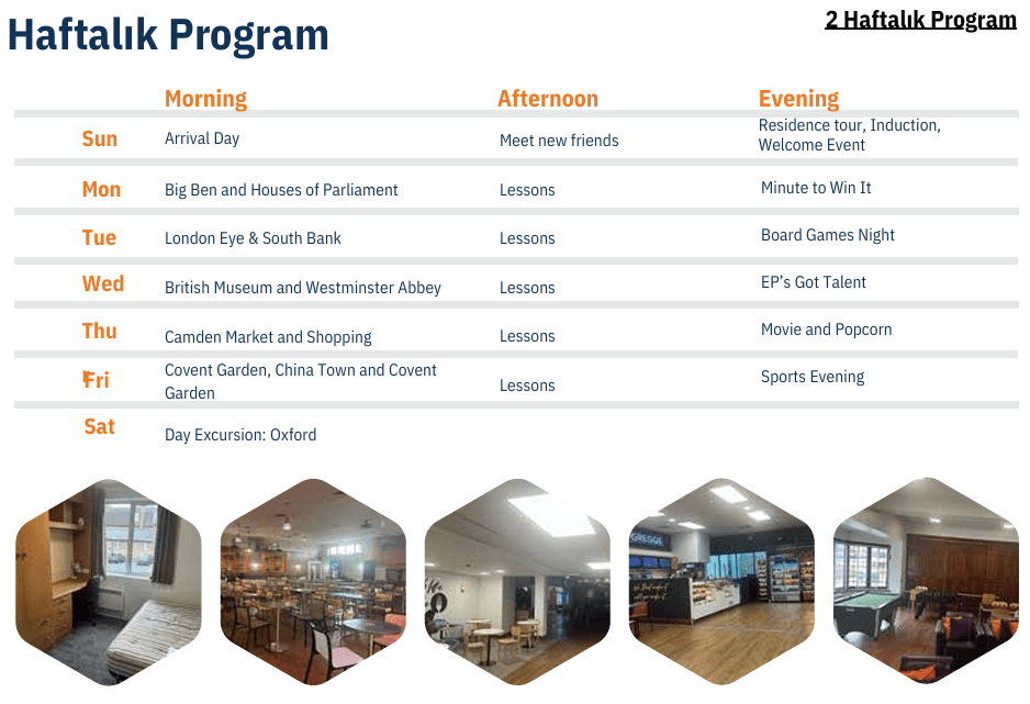 Program, sadece sınıf içi eğitimi değil, aynı zamanda kültürel keşfi de içerir. Öğrenciler tam ve yarım günlük geziler aracılığıyla Londra’nın en ikonik noktalarını keşfeder. British Museum, Buckingham Palace, Camden Market ve Tower of London gibi önemli yerler ziyaret edilerek, İngiltere’nin tarihini ve kültürünü yerinde öğrenme imkânı sunulur.